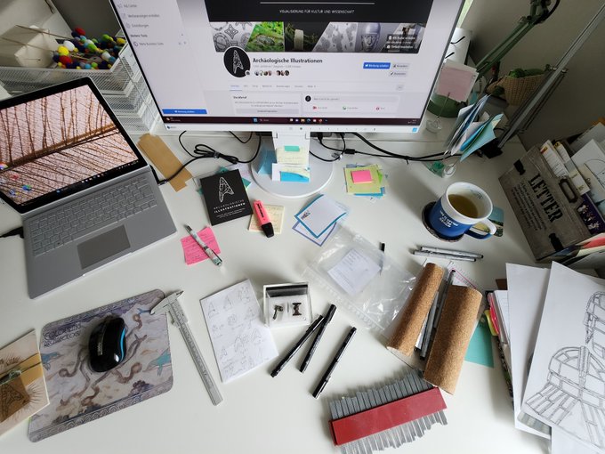 #MondayMorning desk situation! 🙌 Ready, steady, go... #Archaeology #Archillu #desksetup #illustrationart #drawingoftheday