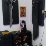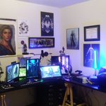 Wanted to share my #Aloy #battlestation since I'll be using it a lot more. I will post specs of my #desktop on my "wolfmug7" #twitch account! I also made a #cosplay corner for building stuff. As you can see...I have an unfinished #FinalFantasy7Remake Buster sword.