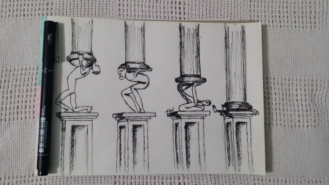 "Well who could have seen this coming?" Day 17 | Collide #inktober #inktober2021 #inktoberday17 #inktober2021collide #minions #matador #viking #despicableme #pen #sketch #quicksketch #impendingdoom #collisioncourse #stop