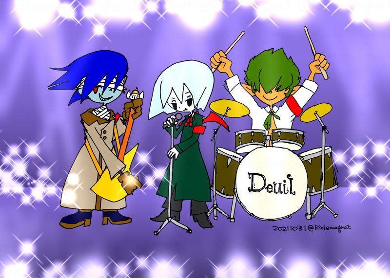 取り急ぎですがお祝い絵描きました。Deuil結成日おめでとう!!( ^-^)ノ∠※。.:*:・'°☆ #Deuil結成日おめでとう_2021 #みんなのDeuil #popn_art #音ゲーキャラ描こうぜ
