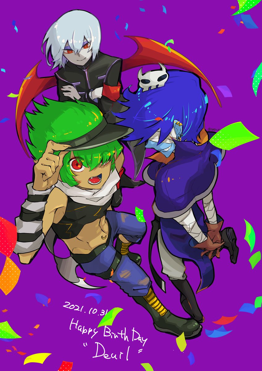 ハロウィンですね!Deuilが成立した日らしいわ! ALTちゃんもハロウィンが大好きので、一緒にやって来た! #ポップン版深夜の真剣お絵描き60分一本勝負 #Deuil結成日おめでとう_2021 Halloween is the day Ash, Yuli and Smile “banded together” to form their band, Deuil! Alt came along too!