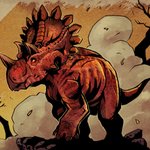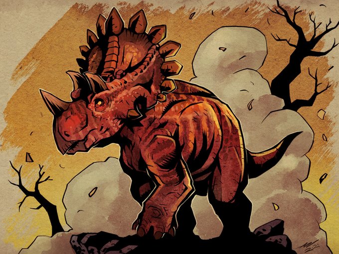 Day 17: Regaliceratops a.k.a “Hellboy” by the small broken horns in the fossil, so I drew it in the classic Mignola style . #Dinovember #DrawDinovember #paleoart