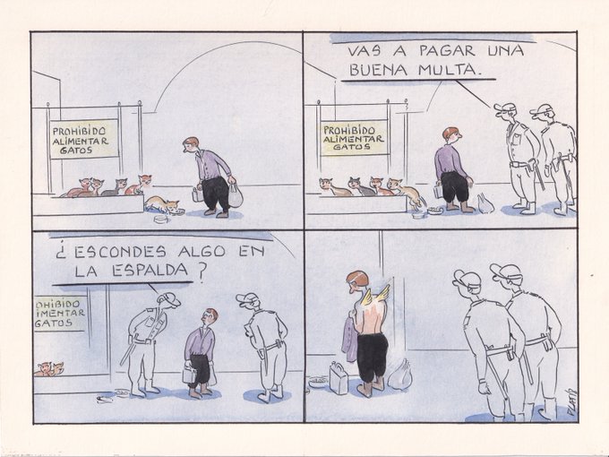 Mi viñeta de hoy domingo 20 de febrero de 2022. Rem. #DiaInternacionalDelGato a tod@s los amantes de los gatos, a los que cada día cuidan en la calles sus colonias con frío, lluvia o nieve. Gracias por ell@s.
