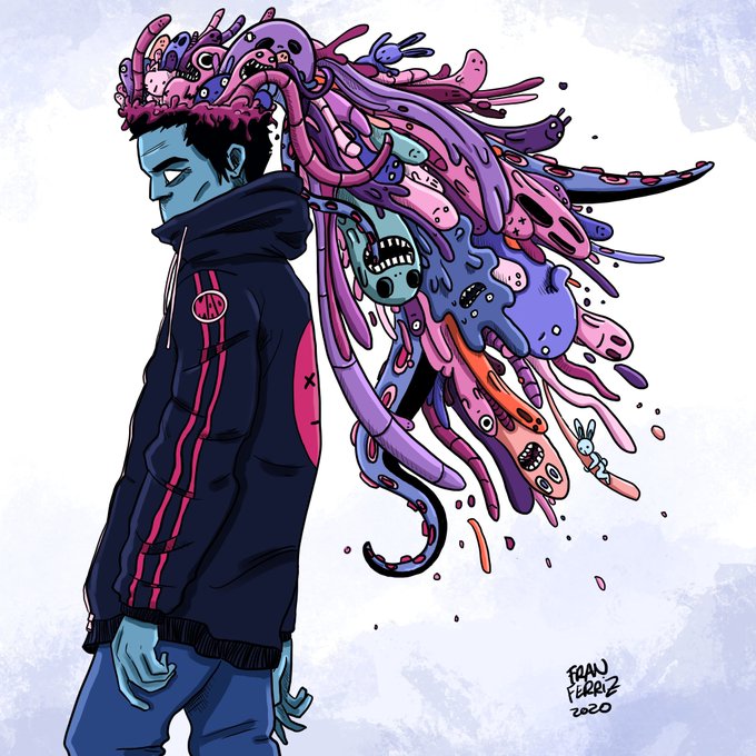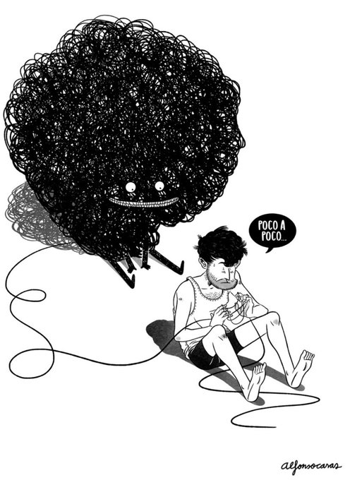 Hoy es el #DiaMundialdelaSaludMental. Yo tengo unos cuantos problemas de ese tipo, así que hoy el #inktober va de eso. Aquí va un hilo de ilustraciones que tienen que ver con salud mental y tratan de expresar lo que siento. Si os gusta, se agradece RT.