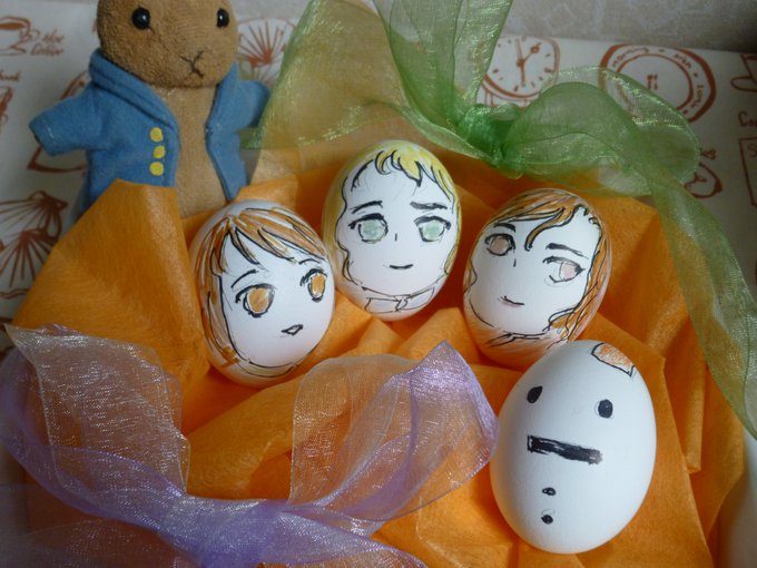 今日はイースターエッグなのですね。彼女たちに似合うイベントじゃないですか。たまにDDの彼女たちを、、、うん、卵は描きにくい。そして白い卵は4個しかなかった😶 #イラスト #北へ。#DiamondDust