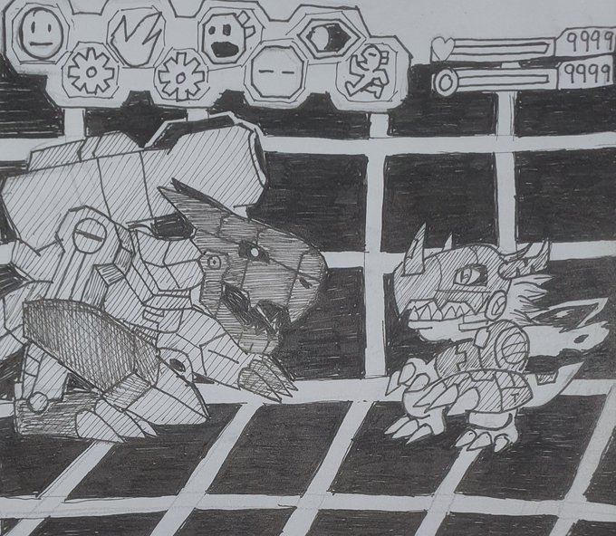 Día 2: Combate de mi infancia Machindramon VS Metalgreymon #digimon #digimonWorld #psx #fanart #draw #ink #inktober2022 #Drawtober2022 #dibujo #PSX #nostalgia