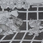 (>>OPEN COMMISSION_DM please!<<) The Battle at Gear Savanna.(1/3) #digimon #digimonworld #digimonworld3 #taragraphika #commission #mugendramon #machinedramon #agumon #kotemon #gearsavanna #fanart #traditional #traditionalart #playstation #ps1