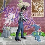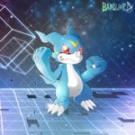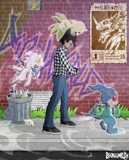 Commission 31 completed! 🐳 Gammamon (ガンマモン), Terriermon (テリアモン), V-mon (ブイモン) and our #Digimon Tamer, @thatguychris93! #デジモン #DigitalMonster