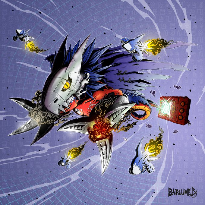 Ryo Akiyama (秋山 遼) ー the Legendary Tamer & Cyberdramon (サイバードラモン), now with colors! 🐳 #デジモン #Digimon #DigitalMonster