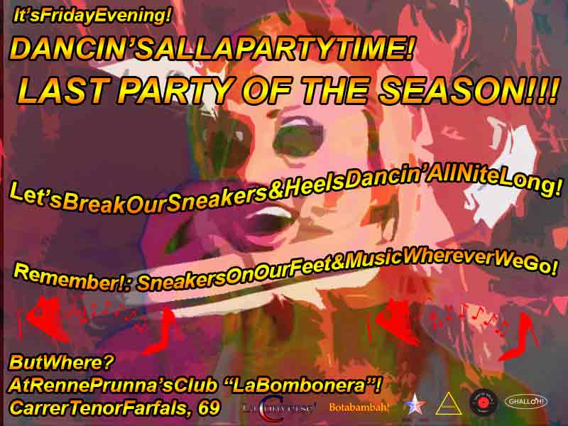 FridayEvening = Dancin’SallaPartyTime! Last Dancin’SallaPartyOfTheSeason!. NextOne...InSeptember!. WennGottWill! SØ>Let’sBreakOurSneakers&HeelsSancin’AllNightLong! Remember!, SneakersOnOurFeet&MusicWhereverWeGo! #art #photo #photography #digitalart #digitalphotography #poster