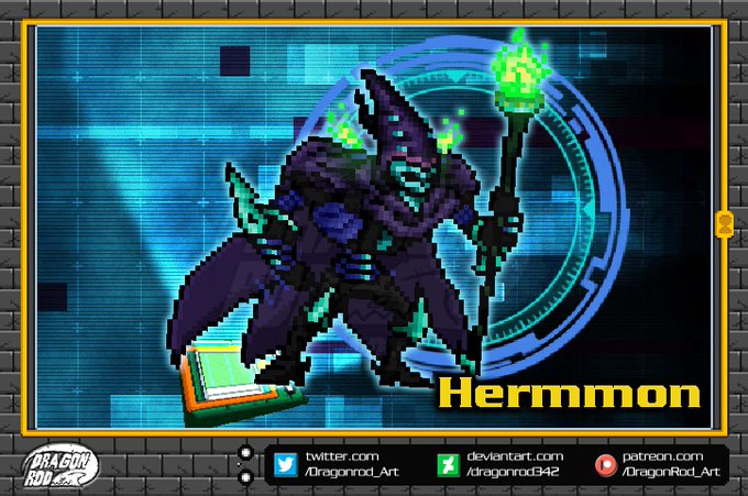 #Digimon #pixelart Hermmon . A cancelled Genome Digimon planned to be included in the V-Tamer manga. Gave it Dark Magician colors since it was never painted and that's how I see it. . #デジモン #gameart #DigitalWorld #GhostGame #Fanart #vitalbracelet #dimcard #DigimonAdventure
