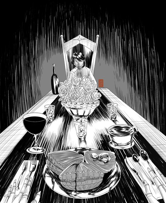 Madame Anastasia Banners YCH illustration for @ witchoundart #digitalart #illustration #Dinner #ychcommission