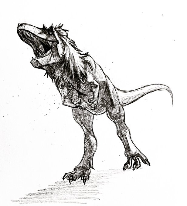 A male #Qianzhousaurus vocalizing. I started this sketch a few weeks ago, in anticipation for #prehistoricplanet but forgot to snap a few pics of it. So I decided to post it for #dinosaurday. #tyrannosaurid #paleoart #art #sketch #drawing #paleontology #tyrannosaur