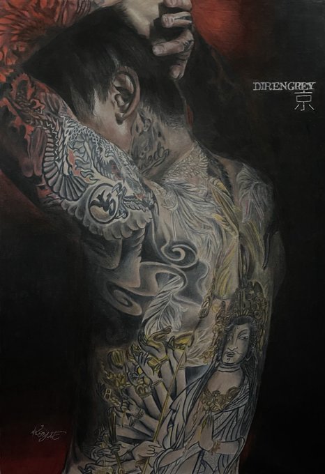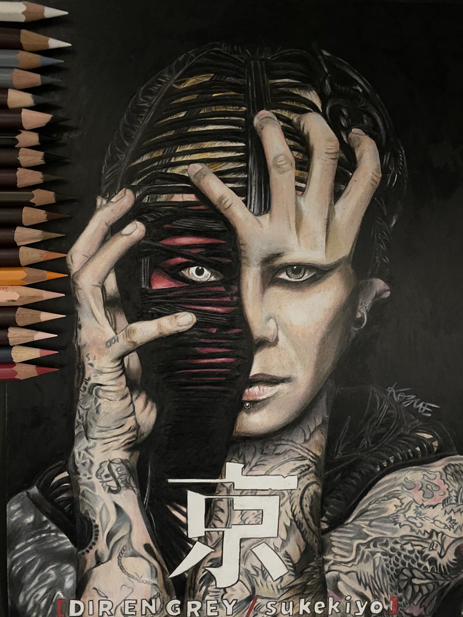 #関係者に届くまでリツイートされ続けると聞いて いつかご本人に見て頂けたら嬉しいです…✲゚︎。.。₀:*゚✲゚︎*:₀。 ☆固ツイ用☆ #DIRENGREY #京 #色鉛筆画 #タトゥー #絵描きさんとつながりたい #sukekiyo