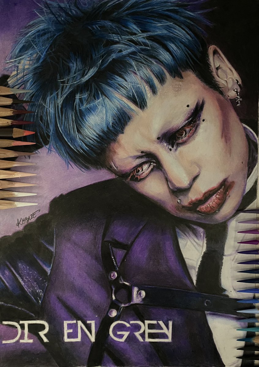 #自分の作品を載せて褒めあおう タグお借りします 今は描けないので… 過去作ばかりですが 色鉛筆画です✏︎ (※以前はKOFキャラやら鬼滅、漫画キャラも描いてました) #DIRENGREY #京 #色鉛筆画
