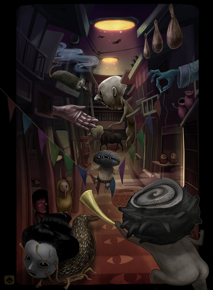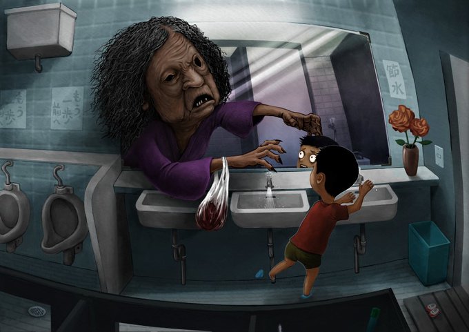 きっと幼少期の自分は夢中になった本だろうなと。まだ見てない他の97怪異を見るのが楽しみちらり #学校の怖い話ビジュアル大図鑑 #ホラー #創作クラスタと繋がりたい #絵描きさんと繋がりたい #artwork #illustration #art #artist #painting #キャラクター #horror #Disgusting #midnight
