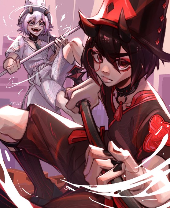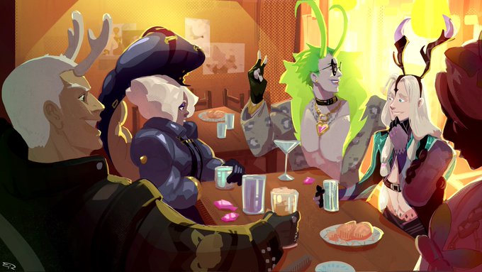 I love Triki and his bounty hunter family 😭 I wanted to draw them celebrating a big win! #Dislyte #dislytefanart #DislyteSOTS