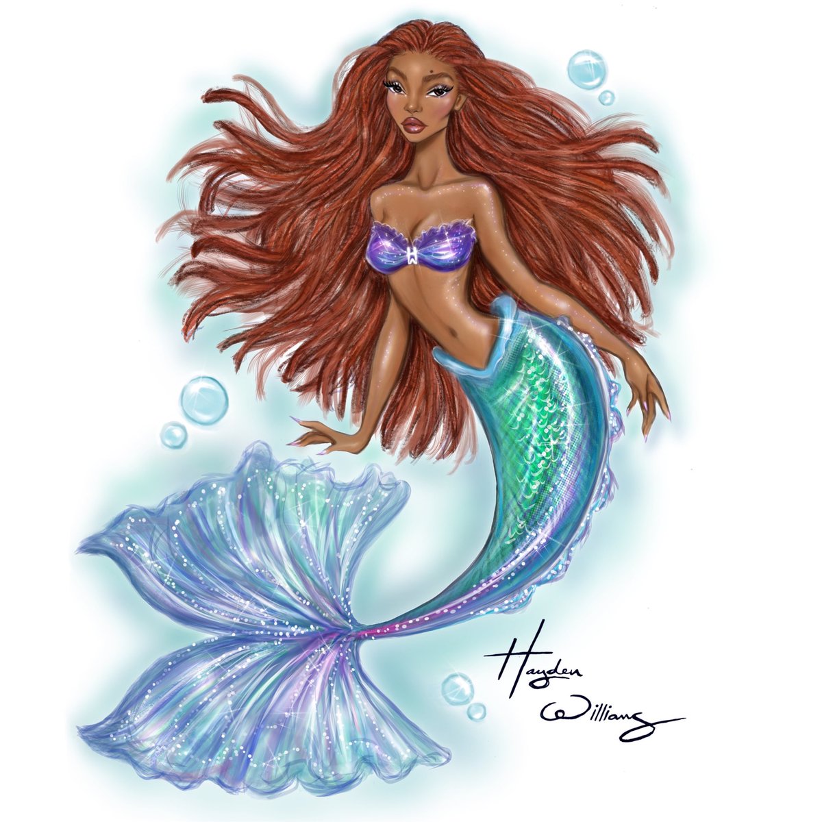 Movie premiere Ariel 🧜🏽♀️ 🐚 🌊 Presenting, #HalleBailey as #Ariel in #TheLittleMermaid. I felt inspired to create a design for the red carpet premiere of TLM. #Disney #DisneyPrincess #Mermaid #BlackMermaid #MyAriel @HalleBailey instagram.com/p/CnaoGG2Ip4F/