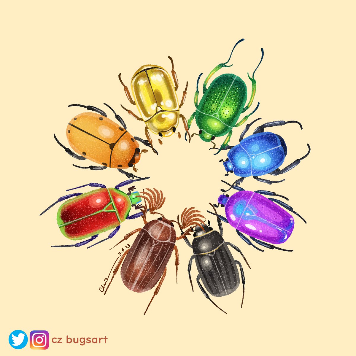 Embrace diversity- scarab beetles are living gems with such a variety of colors! #entomology #Diversity #sciart #DigitalArtist #digitalart #insects #beetles #illustraion #ArtistOnTwitter