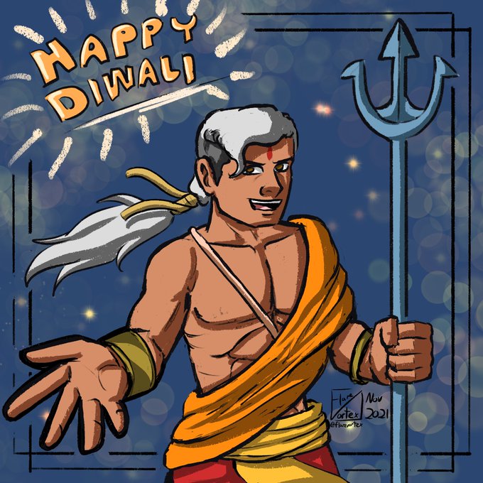 Happy Diwali everyone :) I didn’t have time to make a new Diwali art so have an old art with my OC Varun from last year~ #DigitalArt #HappyDiwali #Diwali2022 #OC #OriginalArt