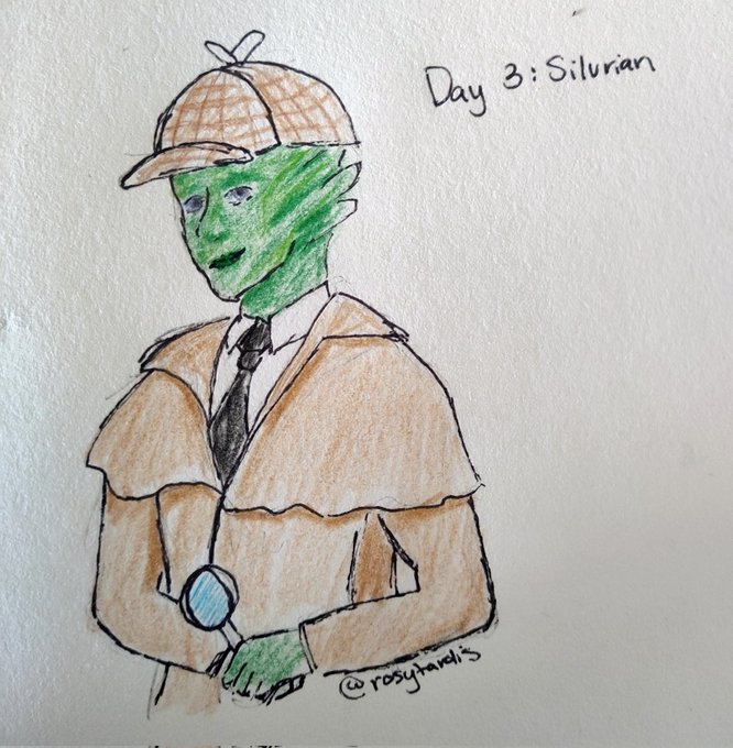 Day 3: Silurian Vastra and Jenny are going as Sherlock and Watson for Halloween this year🥹 #DoctorWho #Inktober #doctober