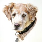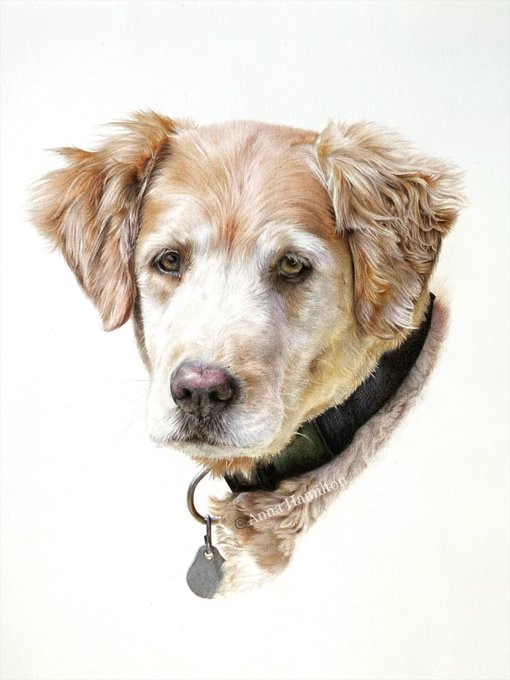 It’s not very often I get to meet the subjects of my portraits but I was very lucky to meet lovely Mabel and her owners. What a sweet and happy girl! As all Goldens are 💛 #dogs #ArtistOnTwitter #art #petportrait