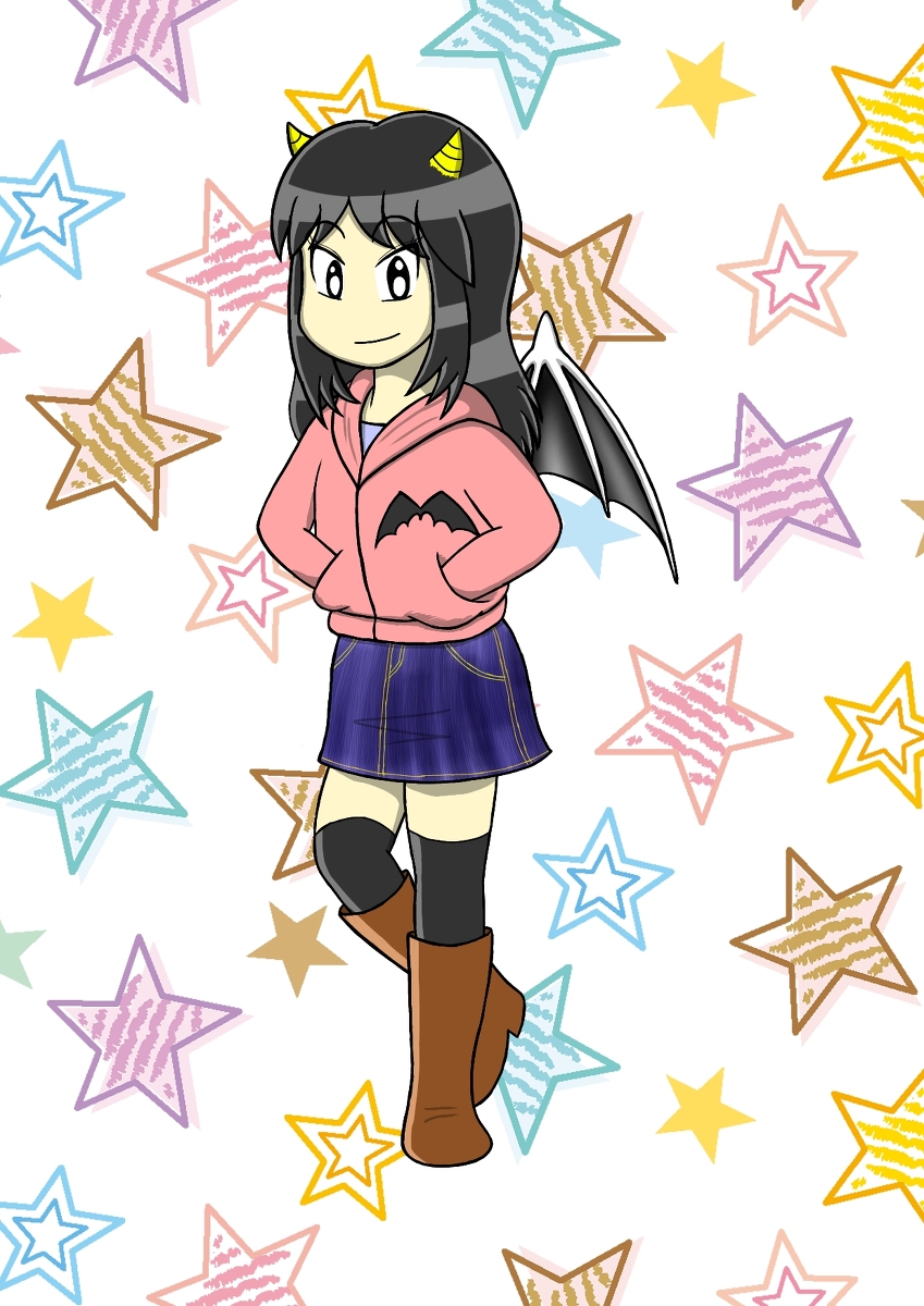 パーカーにデニムのミニスカート #ミニスカート #pixiv今日のお題 #パーカー #小悪魔 #女の子 #オリジナルキャラクター #オリジナル #Dokkin pixiv.net/artworks/93556…