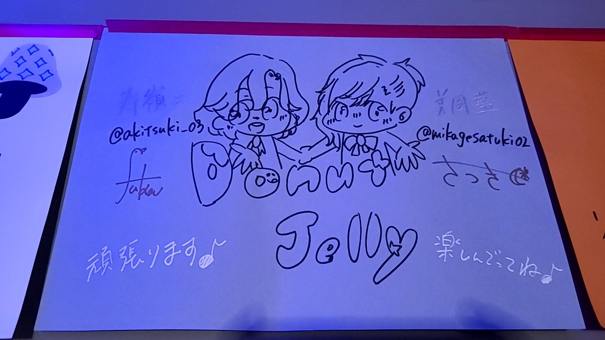 迷子の美風が帰ってきたよ! (案の定迷子ってた) ちょっと(かなり)顔が丸い嶺二でお送りします! 迷子回収したらちょうどスタートしてた! #アキコス よろしくお願いいたします! #DonutJelly