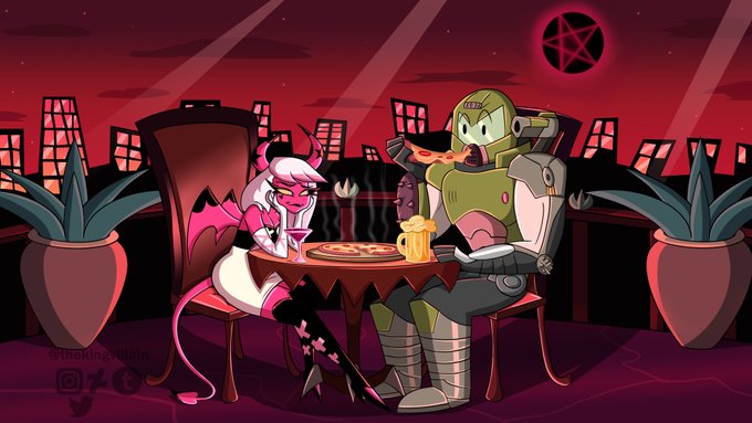 Honestly, they look cute as a couple 😍 commissioned by @TheDoomSlayer42 #HelluvaBoss #HelluvaBossFanart #HelluvabossVerosika #DOOM #doomslayer #DoomEternal #Commission #commissionart
