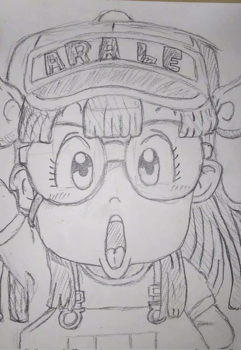 珍しくやられちゃったアラレちゃん。 思考回路はショート寸前!のオボッチャマンことキャラメルマン4号 ※諸事情により少々大げさにメカ感を出しております #イラスト #Drスランプ #絵描きさんと繋がりたい