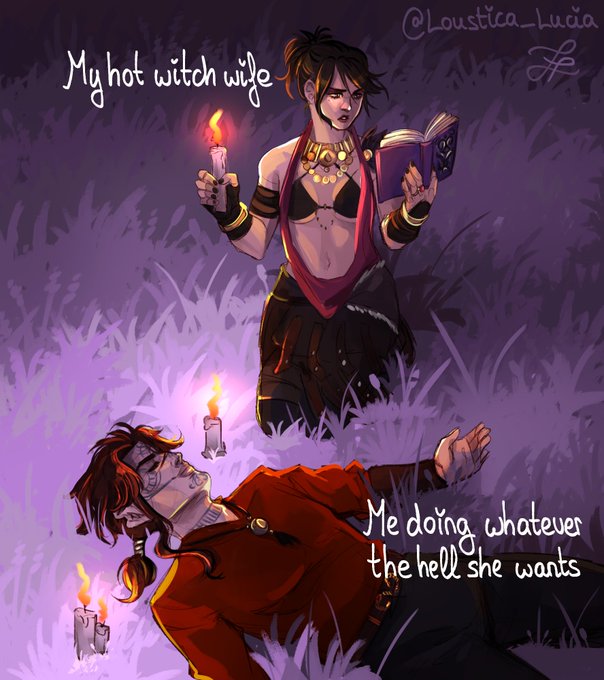Farron Mahariel and his hot witch wife, Morrigan🕯️ This meme must have been done billions times with Morri but I needed it with THEM 🙈😂 #DragonAge #DragonAgeOrigins