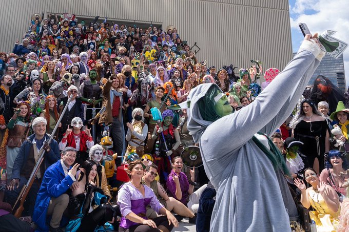 Hey @CriticalRole - We didn't fit on the stairs anymore #dragoncon - Could this be the biggest #critter meetup so far? 📸 @EddieBPhotos 🎵 in spirit @samriegel (we missed you) #criticalrolecosplay #criticalrole