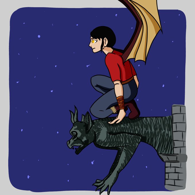 Voilà le premier dessin que j'avais fait pour préparer l'Inktober avant que ma participation ne soit annulée. Gargouille ° ° ° #dragongirl #medieval #fantasyart #marietteoc #digitalart #inktober #inktober2022 #creepikachudraw