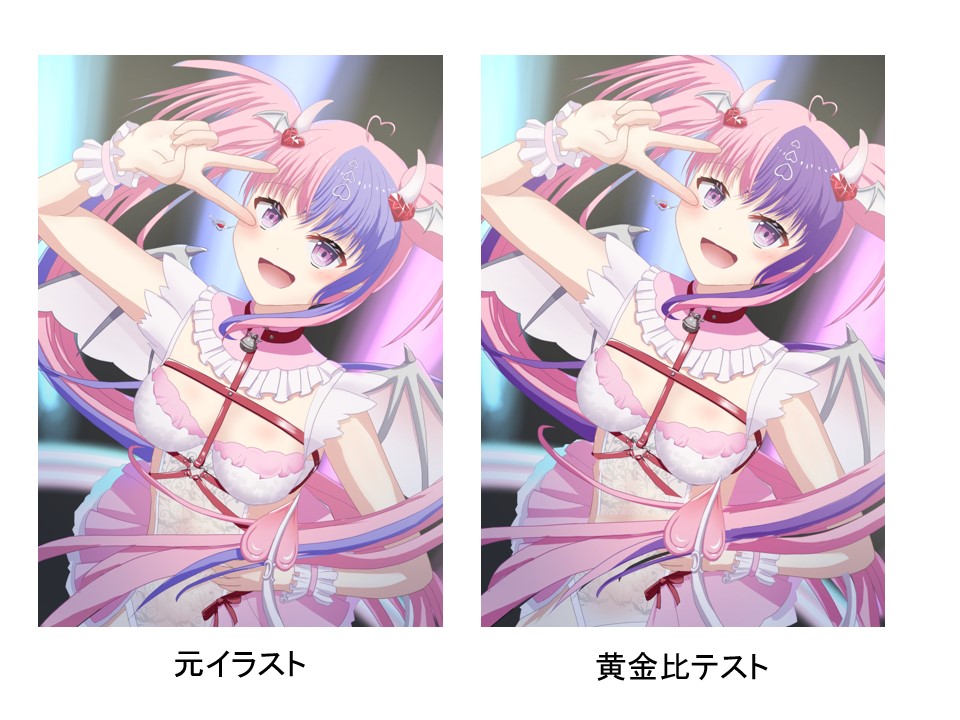 この間のアイアンマウスちゃんのファンアートのコンペ、上位に食い込んでる人たちには黄金比の構図(を、紙面に合わせた変形)している人が多いみたいだったから、テストしてみた。 こうすると垢抜けて、ちょっと背が高く見えるのね。 紙面は同じなのに、不思議。 #ironmouseart #Drawfest4_ogipote twitter.com/Nanao_Mikura/s…