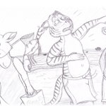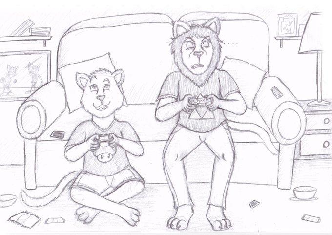 Day 17: Salty A couple of gamers: she's winning, and he's... a little bit salty about it #inktober #inktober2022 #inktoberday17 #drawing #art #artwork #design #sketch #traditional #pencil #draw #drawingaday #illustration #inktoberday17salty #salty #anthro #furry #furryart #lion