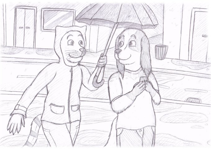 Day 13: Kind Lend a hand, it always helps to be kind (especially on a rainy day!) #inktober #inktober2022 #inktoberday13 #drawing #art #artwork #design #sketch #traditional #pencil #draw #drawingaday #illustration #inktoberday13kind #kind #anthro #furry #furryart #cat #dog