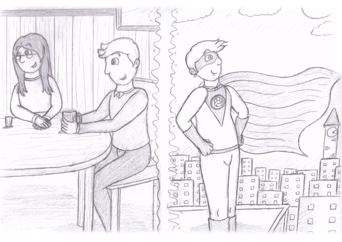 Day 26: Ego By day, a civilian. By night, a hero. It can't be easy living with an alter ego! #inktober #inktober2022 #inktoberday26 #drawing #art #artwork #design #sketch #traditional #pencil #draw #drawingaday #illustration #inktoberday26ego #ego #superheroes #superhero #comic