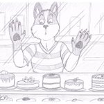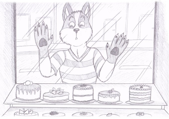 Day 27: Snack Someone's got a sweet tooth - and a keen eye on the town's cake bakery! #inktober #inktober2022 #inktoberday27 #drawing #art #artwork #design #sketch #traditional #pencil #draw #drawingaday #illustration #inktoberday27snack #snack #anthro #furry #furryart #dog