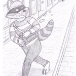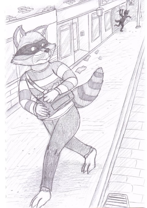 Day 22: Heist There's a theme of animal criminals recently; this robber is on the run! #inktober #inktober2022 #inktoberday22 #drawing #art #artwork #design #sketch #traditional #pencil #draw #drawingaday #illustration #inktoberday22heist #heist #anthro #furry #furryart #raccoon