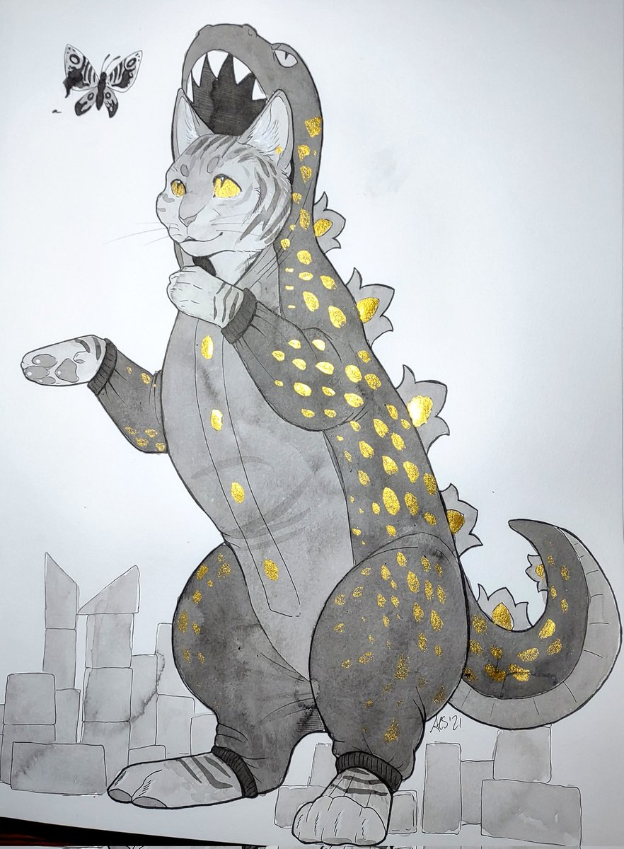 And to finish up CR Drawlloween, here are days 29, 30, and 31: Alien Pumat, Mummy Kiri, and Godzilla Frumpkin #criticalrolefanart #Inktober #drawlloween2021