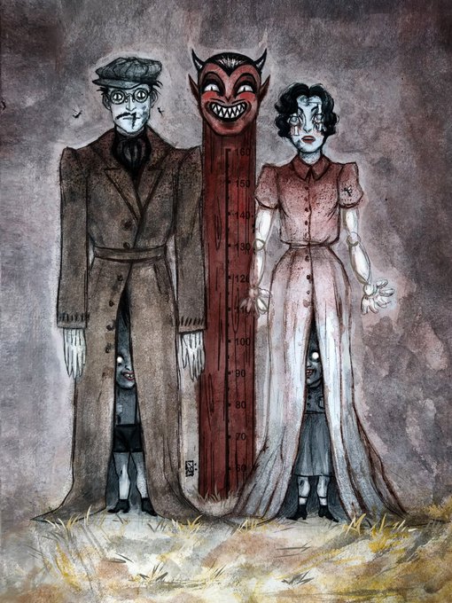 8. The little people - маленькие люди /карлики - Надо было пускать на аттракцион и не вредничать-прорычал мальчик -Теперь точно пустят- сказала девочка Ахахахахаххахихихих #inktober2021 #inktober #drawlloween2021 #drawlloween