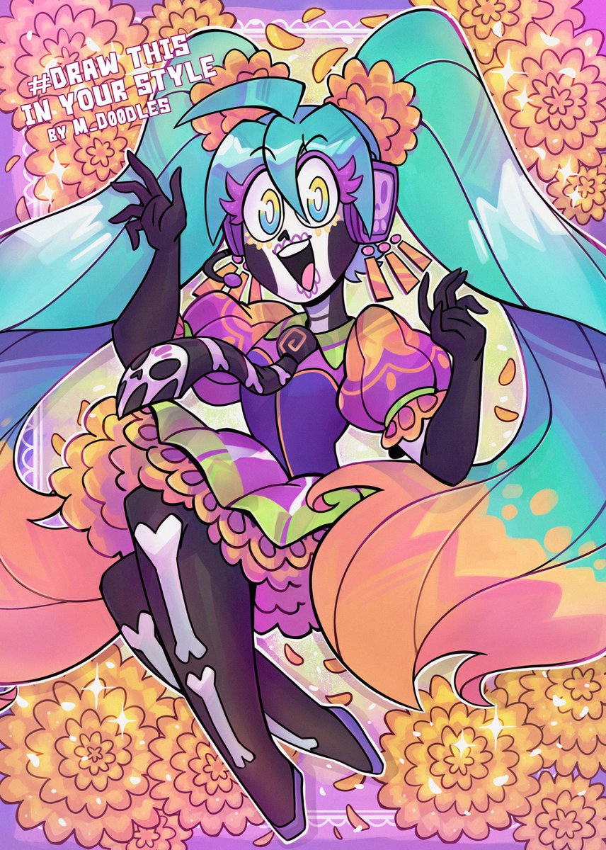 Hey here's my first #drawthisinyourstyle 💖 I did a fan design for Miku of Día de Muertos just tag me if you do it! and use #MikuDTIYSDiadeMuertos probably I'm late for this but I was so busy with work, this #DTIYS don't have deadline ;D #MikuMonday #HatsuneMiku