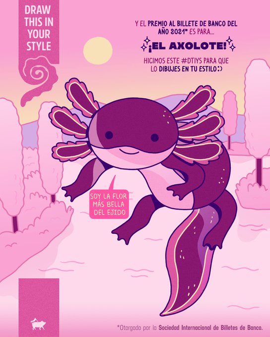 Hace unos días, el billete mexicano de 50 pesos con el axolote ganó el Premio al Billete de Banco del Año 2021 ❤️ Si te gusta dibujar, este #DrawThisInYourStyle es para ti 🖍️🖌️✨ #DrawThisAxoloteInYourStyle
