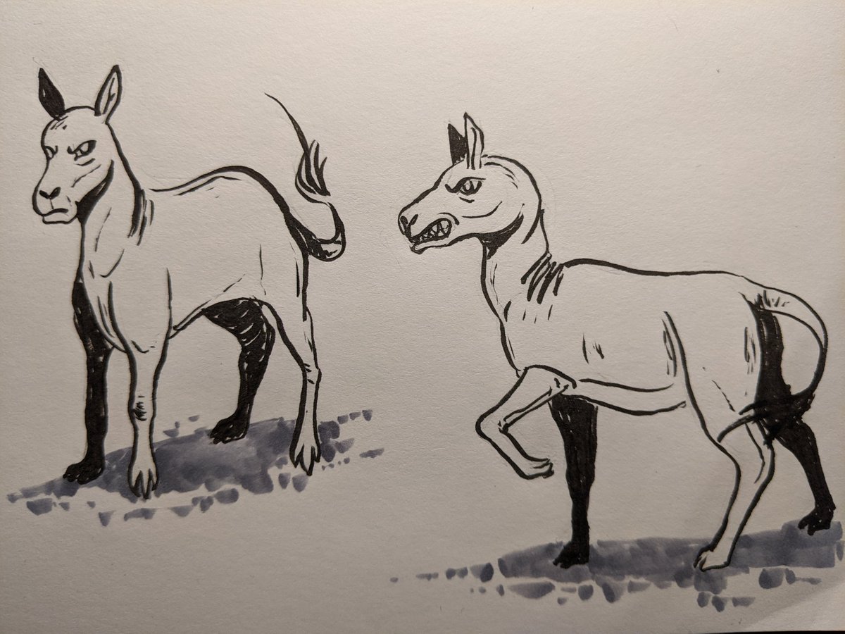 #inktober 27, angry eohippuses. Type of ancient horse. Using the AI bot animals prompt this year. #drawtober #drawtober2021 #botober #botober2021 #inktober2021