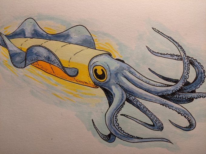 #inktober 28, firefly squid. Using the AI bot animals prompt this year. #drawtober #drawtober2021 #botober #botober2021 #inktober2021 #squid