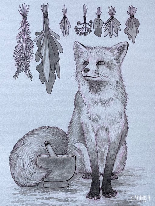 ~ Mortar and Pestle ~ Day 4 of #inktober and @drawtober #drawtobergardenofmagick #fox #Cottagecore #inktober2022
