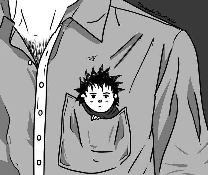 just a little guy napping in hob gadling’s pocket. art by me #sandman #thesandman #morpheus #dream #dreamoftheendless #dreamling #digitalart #fanart