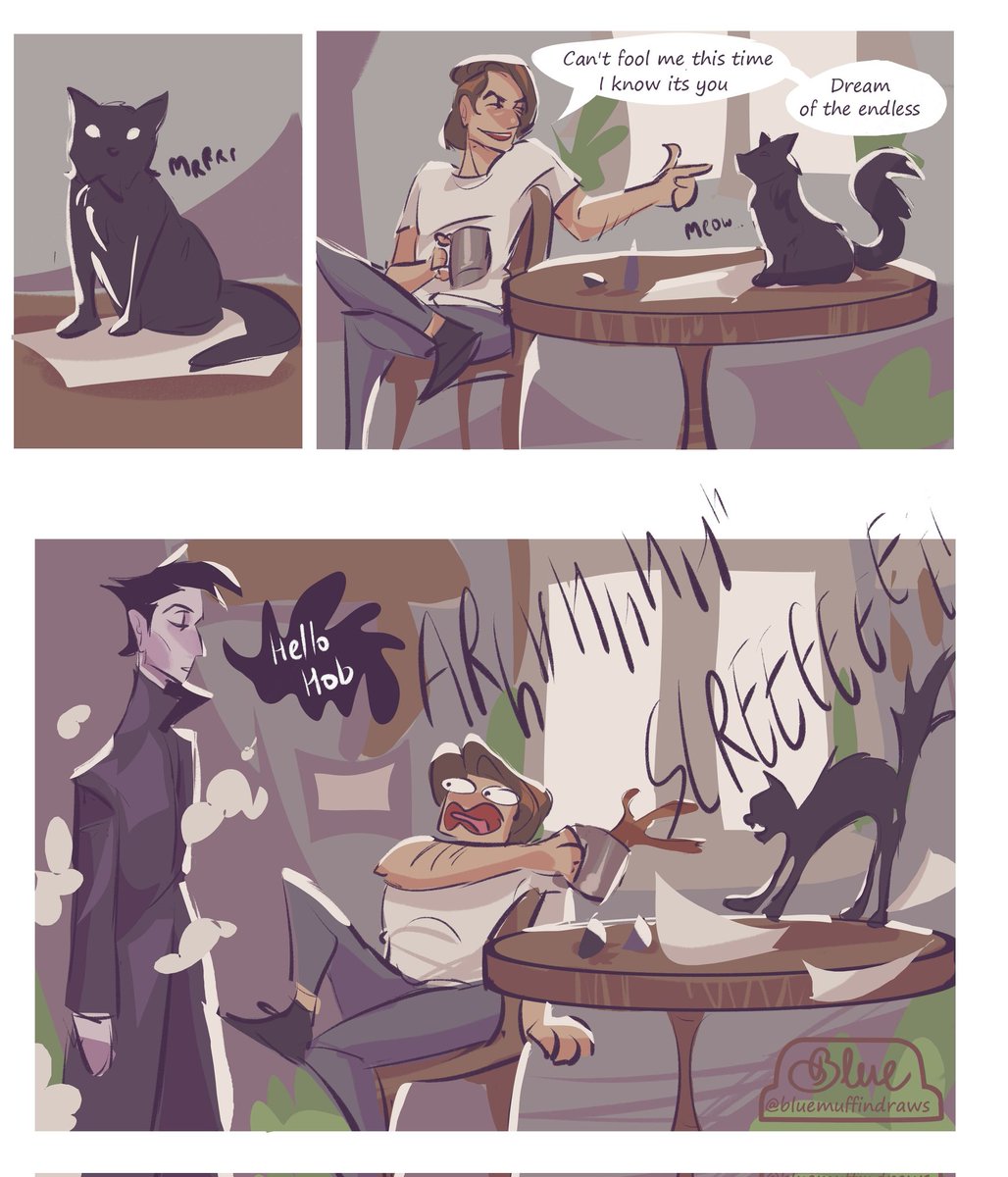 Lesson learned: don’t meow at the King of Dreams #dreamling #Sandman #dreamoftheendless #Hobgadling #sandmanfanart #doodle