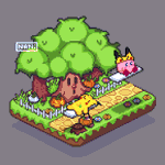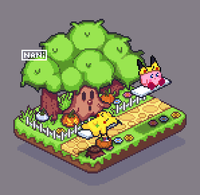 I think I forgot to post here some days of the #pixeltober2022 challenge lol Here is #Pixeltober Day 4: Tree 🌲 #pixelart #kirby #pikachu #dreamland #nintendo #pixeltober