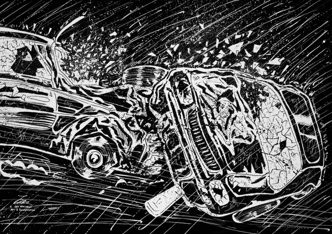 Inktober 2021 Prompt no.17 - “Collide” 🚘 After all the video footage reference I watched for this, I’m now in less of a hurry to get my driver’s license. #inktober #inktober2021 #inktober2021Collide #inktoberday17 #artistsontwitter #Collide #collision #DriveSafe